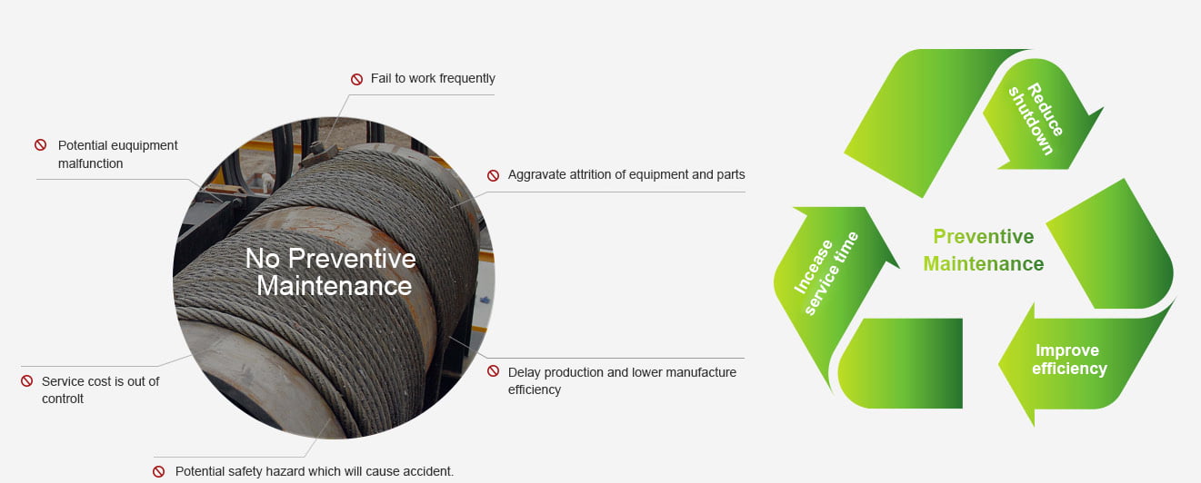 Lo lắng của khách hàng thường xuất phát từ việc thiết bị gặp sự cố, từ đó tốn thời gian bảo trì, sữa chữa và phát sinh các chi phí ngoài dự kiến, thậm chí ảnh hưởng đến sản xuất và giao hàng. Thấu hiểu được điều này, EuroCrane cung cấp cho khách hàng dịch vụ dự phòng sự cố và bảo trì Cầu trục, giúp các thiết bị luôn trong tình trạng hoạt động ổn định, giảm tỉ lệ hao mòn thiết bị và phát sinh sự cố, từ đó đảm bảo quá trình vận hành sản phẩm, kéo dài tuổi thọ và nâng cao hiệu suất sử dụng sản phẩm.